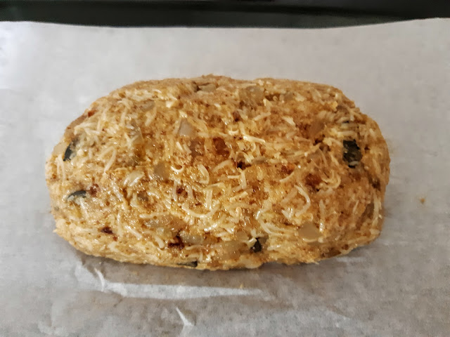 Při první várce na focení se mi stalo, že těsto nebylo dost tuhé a tak jsem přisypala trochu zelené dýňové mouky. Proto ten zelený nádech na řezu.